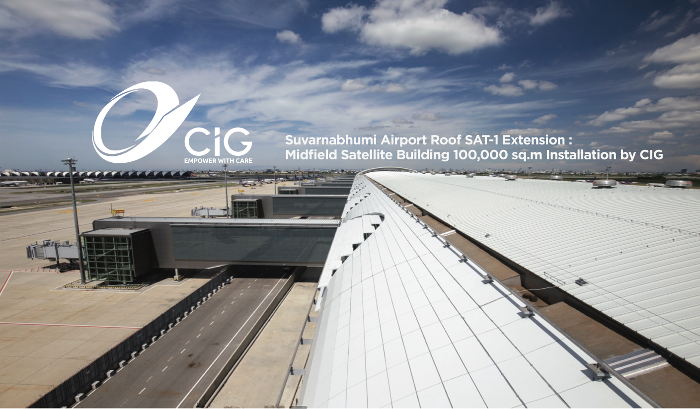 Suvarnabhumi Airport Roof SAT-1 Extension : Midfield Satellite Building 100,000 sq.m Installation by CIG